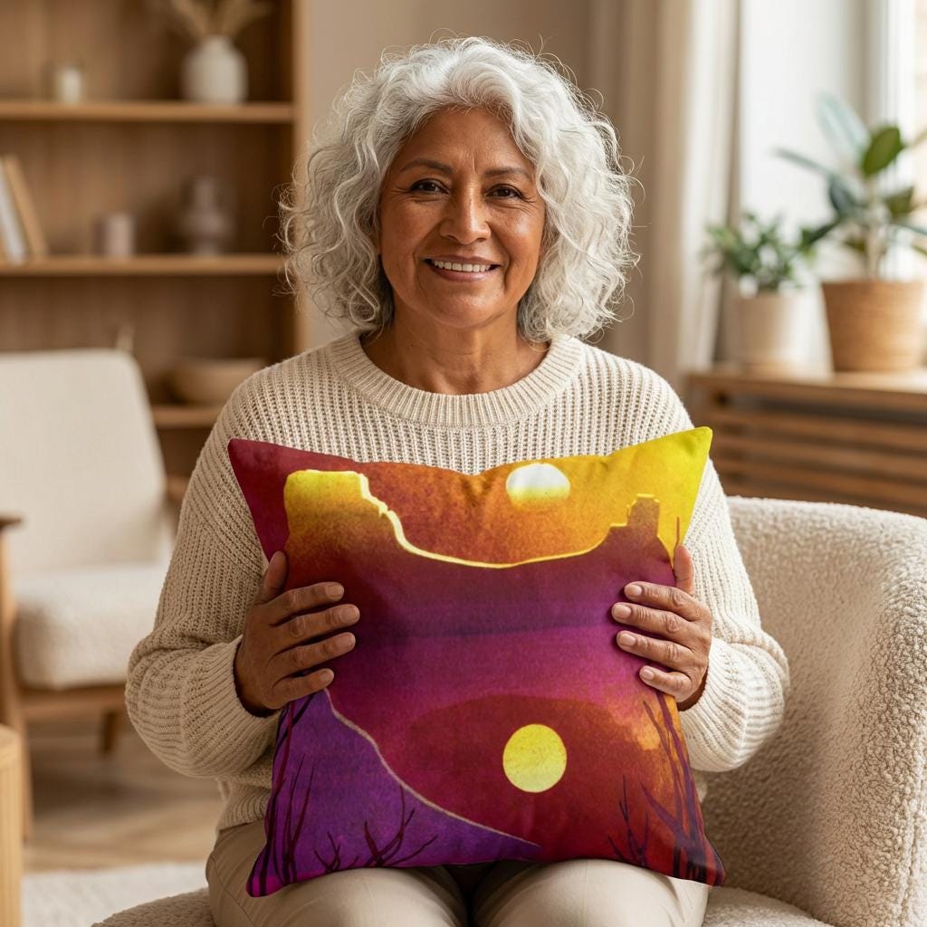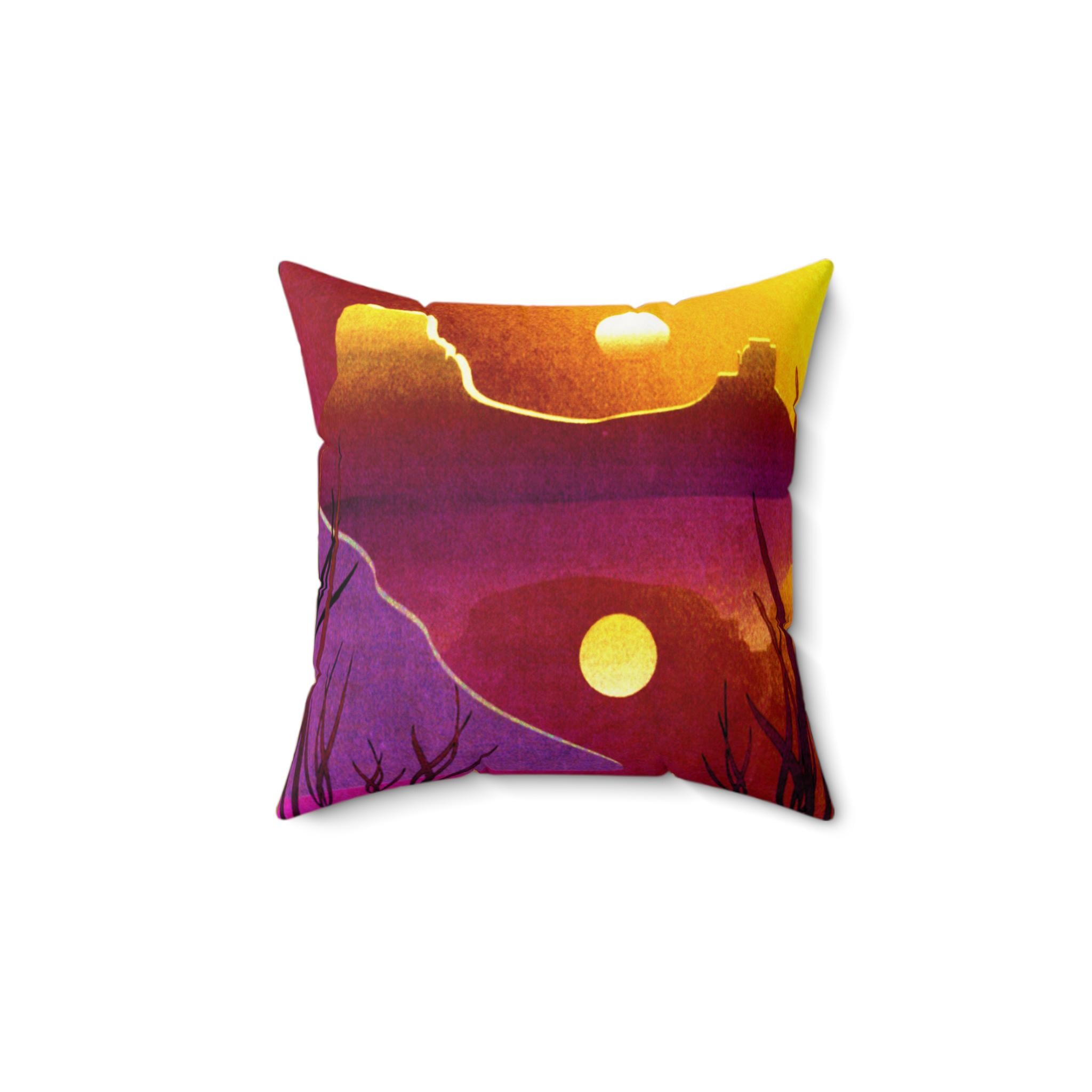 The right accent can bring a whole room to life, and the rich pattern of this desert sunset throw pillow is just what you need to do that.