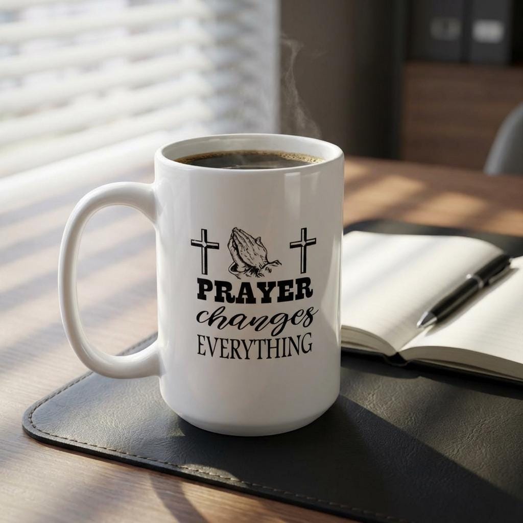 Whether you're a coffee lover or a tea enthusiast, this inspirational mug is a wonderful addition to your daily routine. It's an ideal Christian gift for women, men, or pastor. Microwave and dishwasher safe for easy care. Share the power of prayer with this uplifting and practical gift.