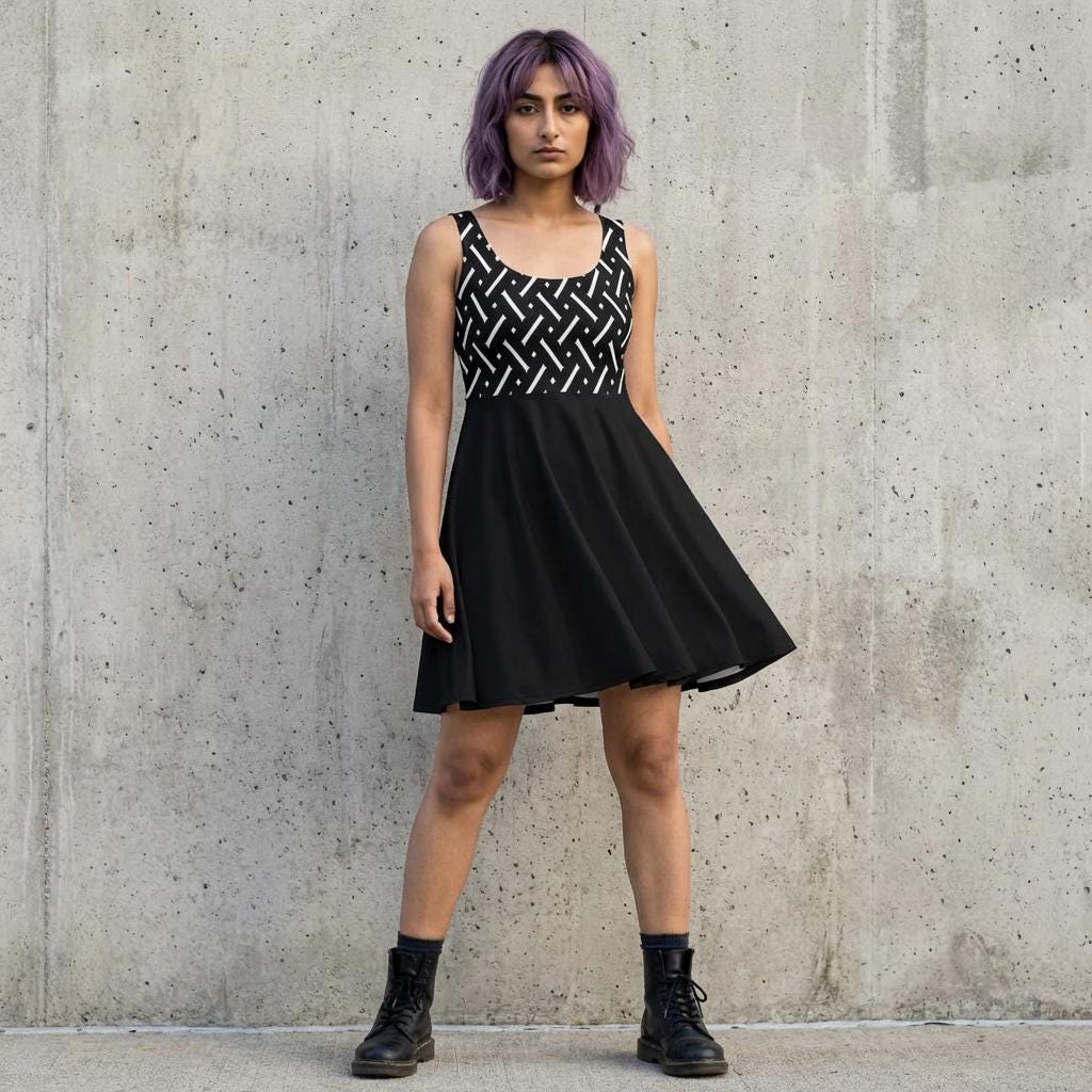 This flirty alternative clothing, stretchy above the knee skater dress, brings sharpness to everyday life.