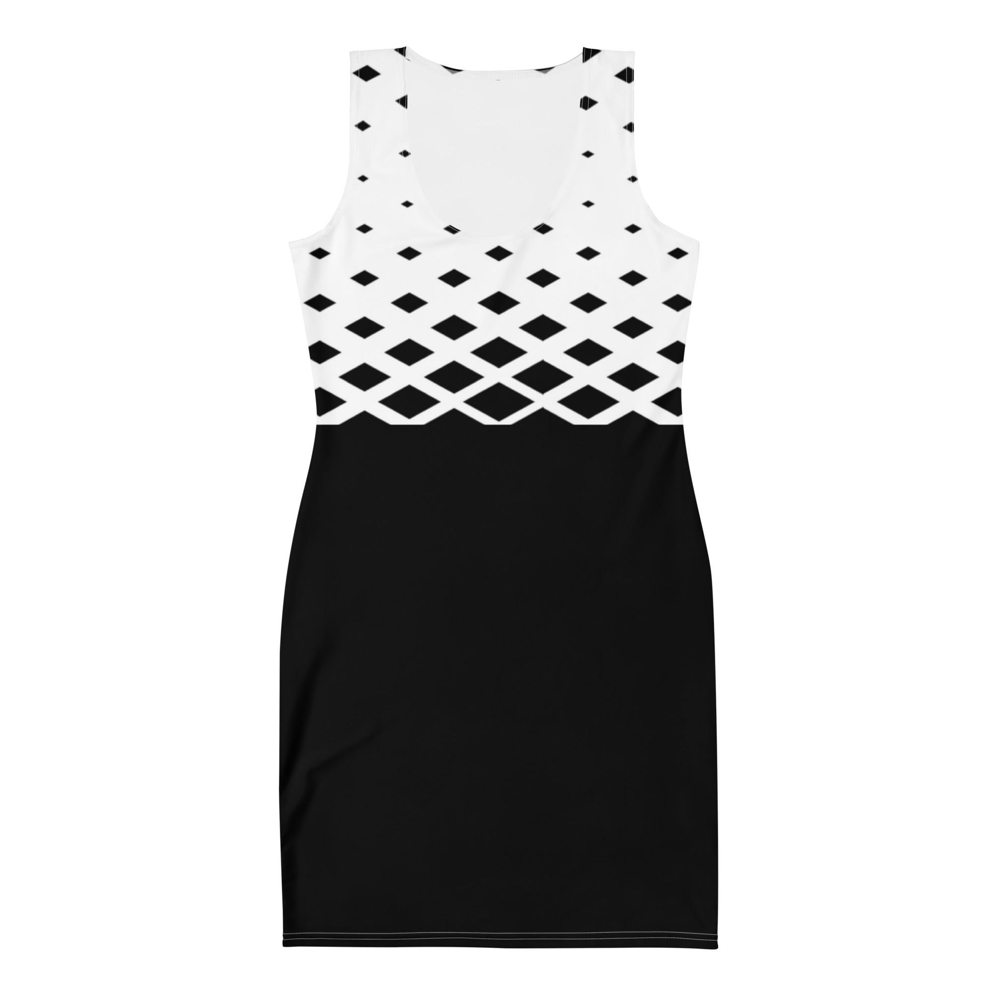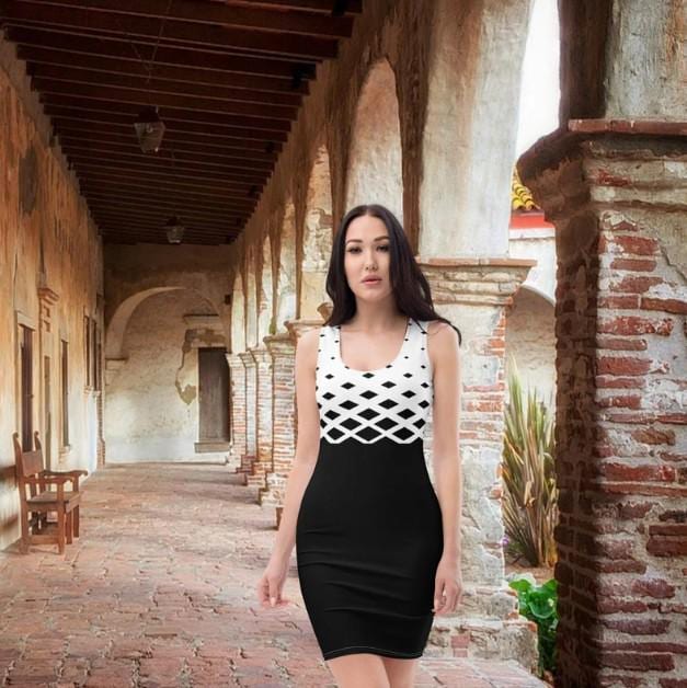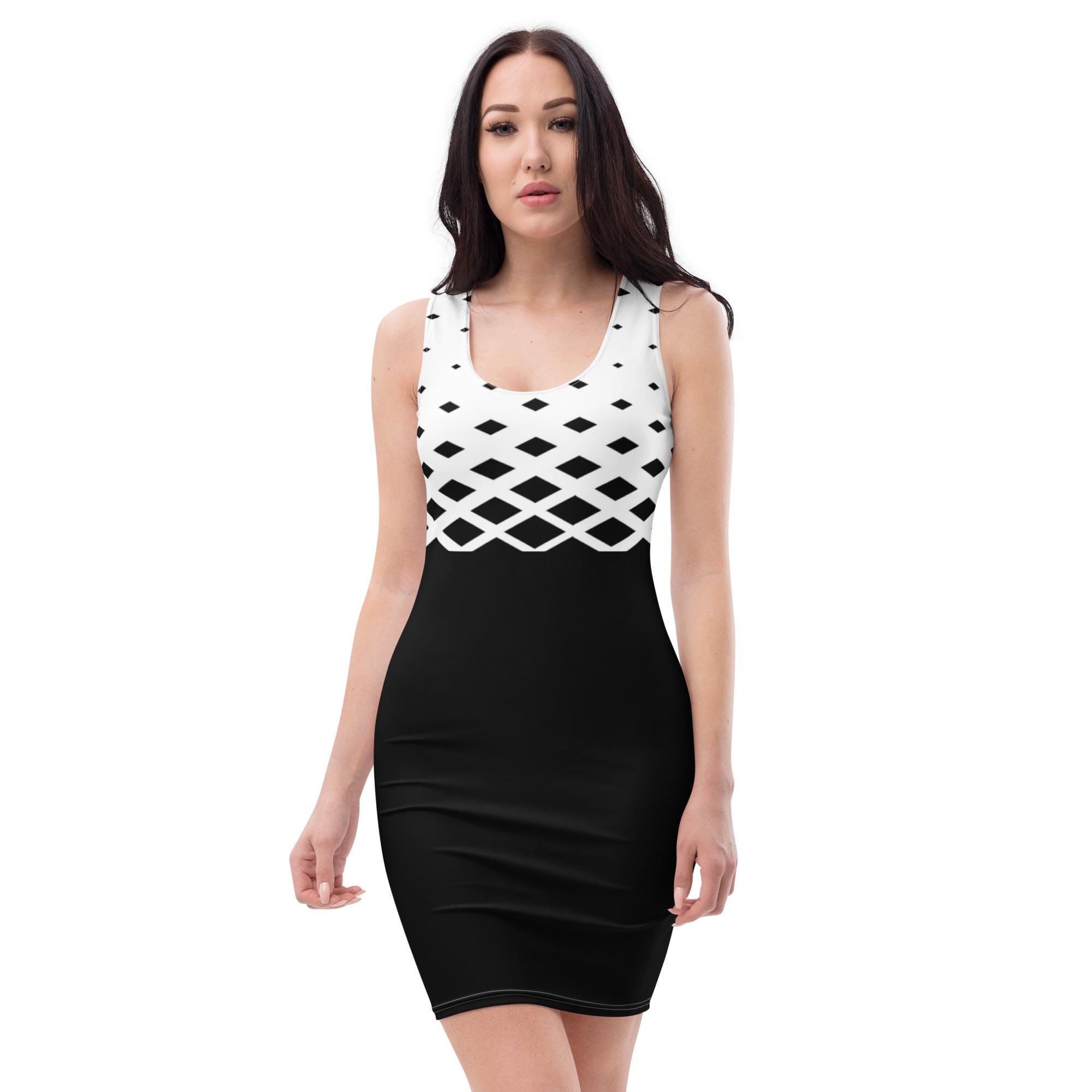 This black and white fitted bodycon pencil dress will make a statement you will look fabulous in.
