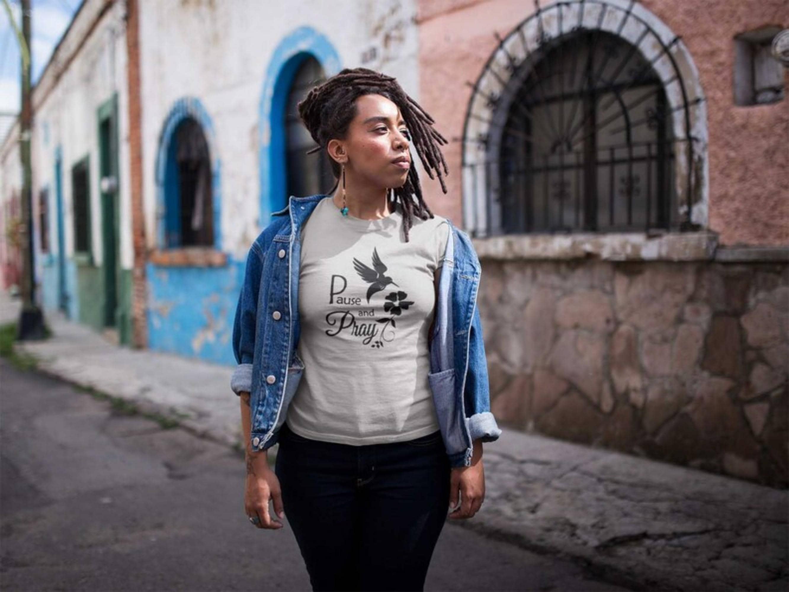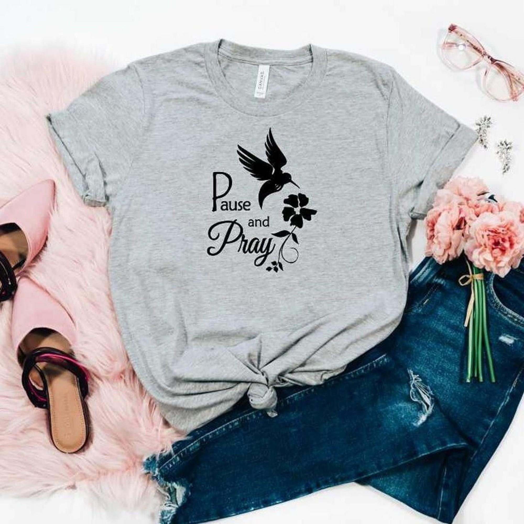 This Christian apparel t shirt is so soft and such a great relaxed fit. The motivational quote is a great reminder to do one of the most important things of your day to Pause and Pray.