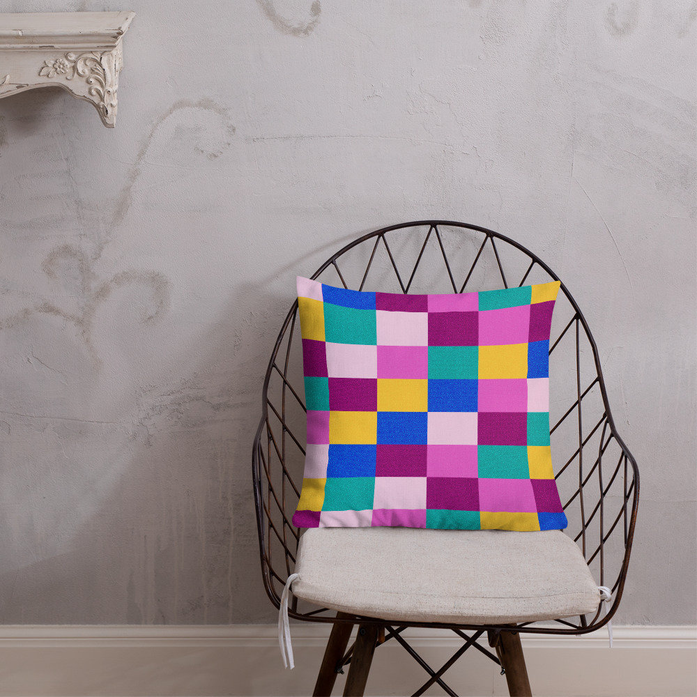 This colorful, 70s style, color-block premium pillow will make any room bright, and is the perfect cushion to pull your décor together.