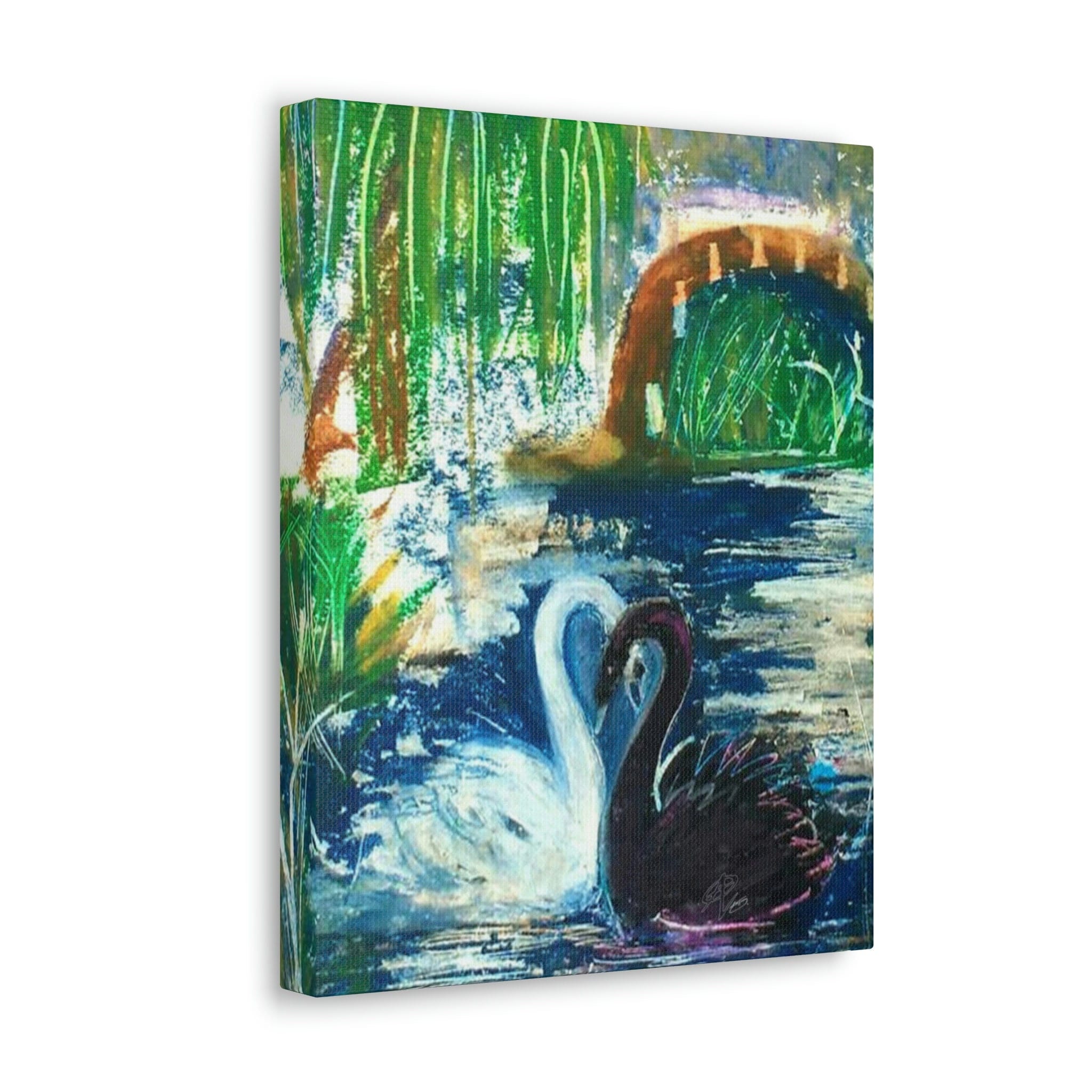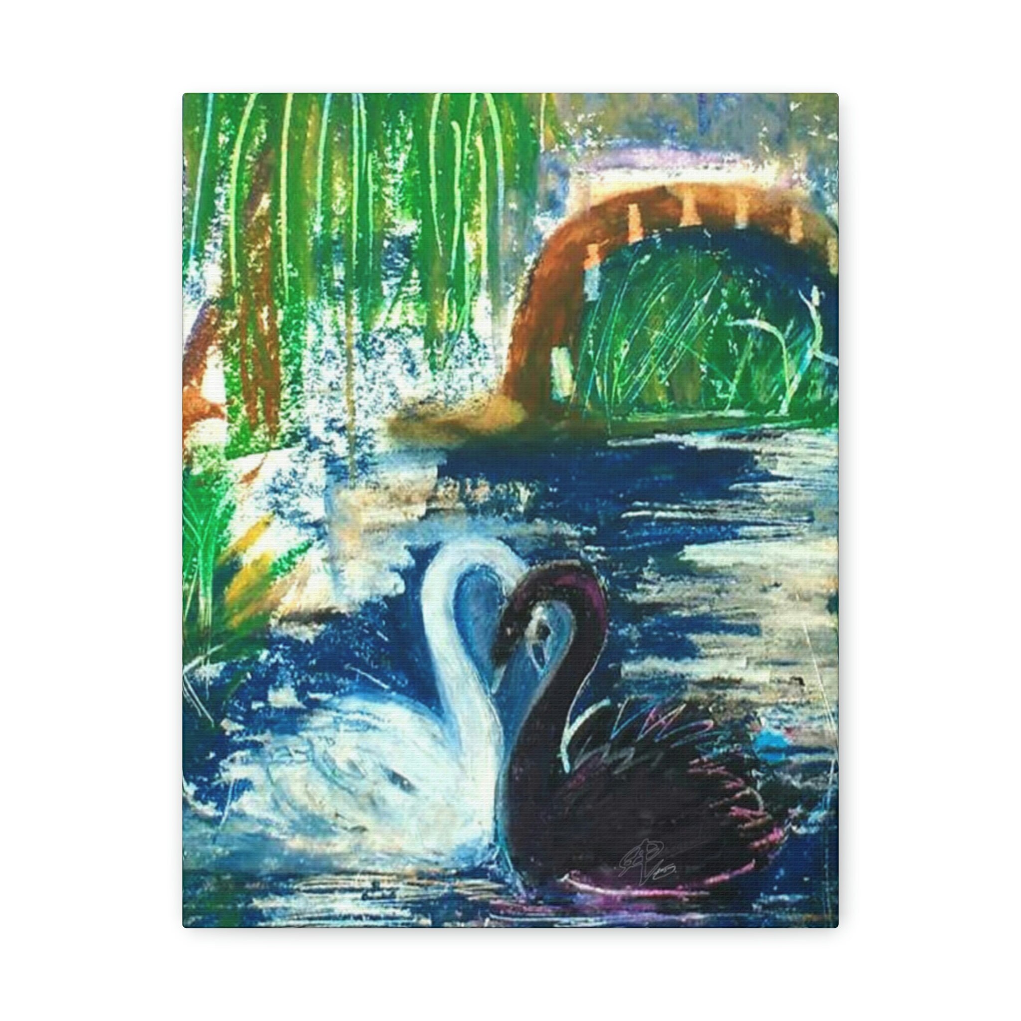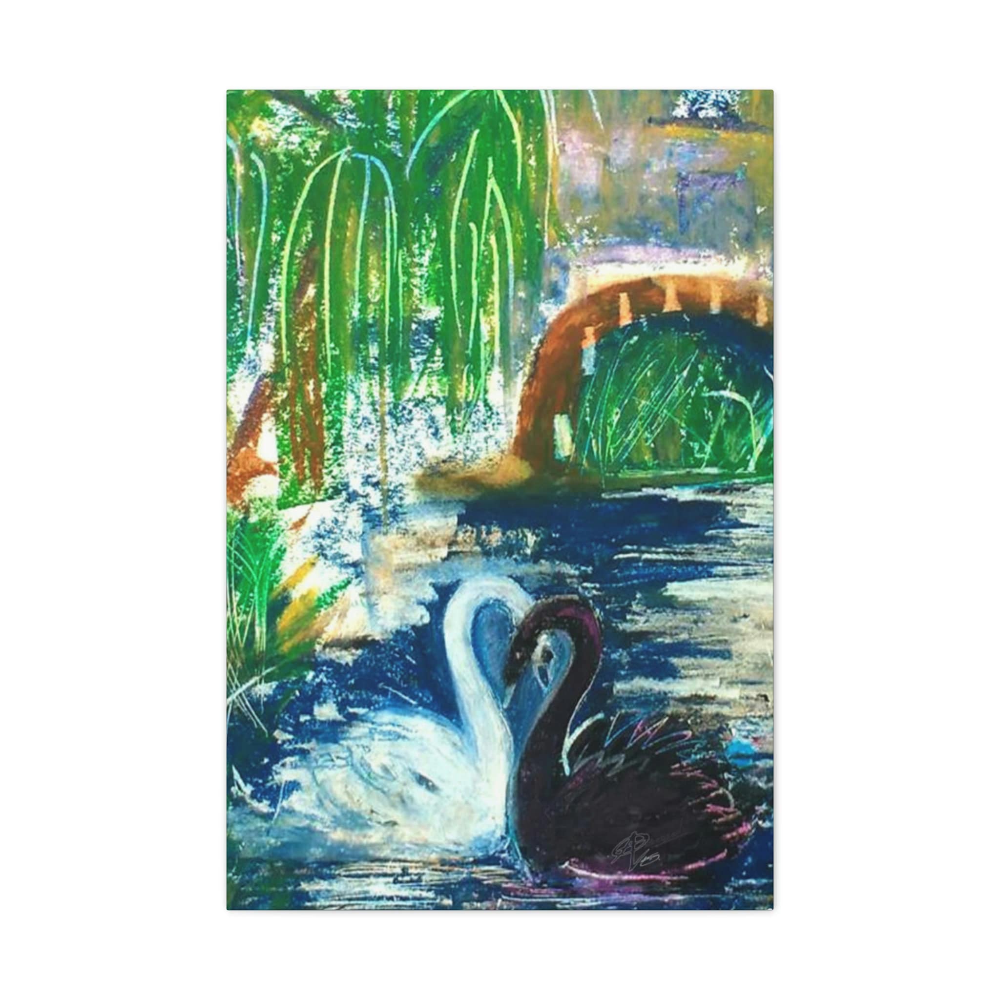 "Swans In An Alcove" canvas reproduction of BellaMonicaARTs pastel painting by artist Allanah Anderson.