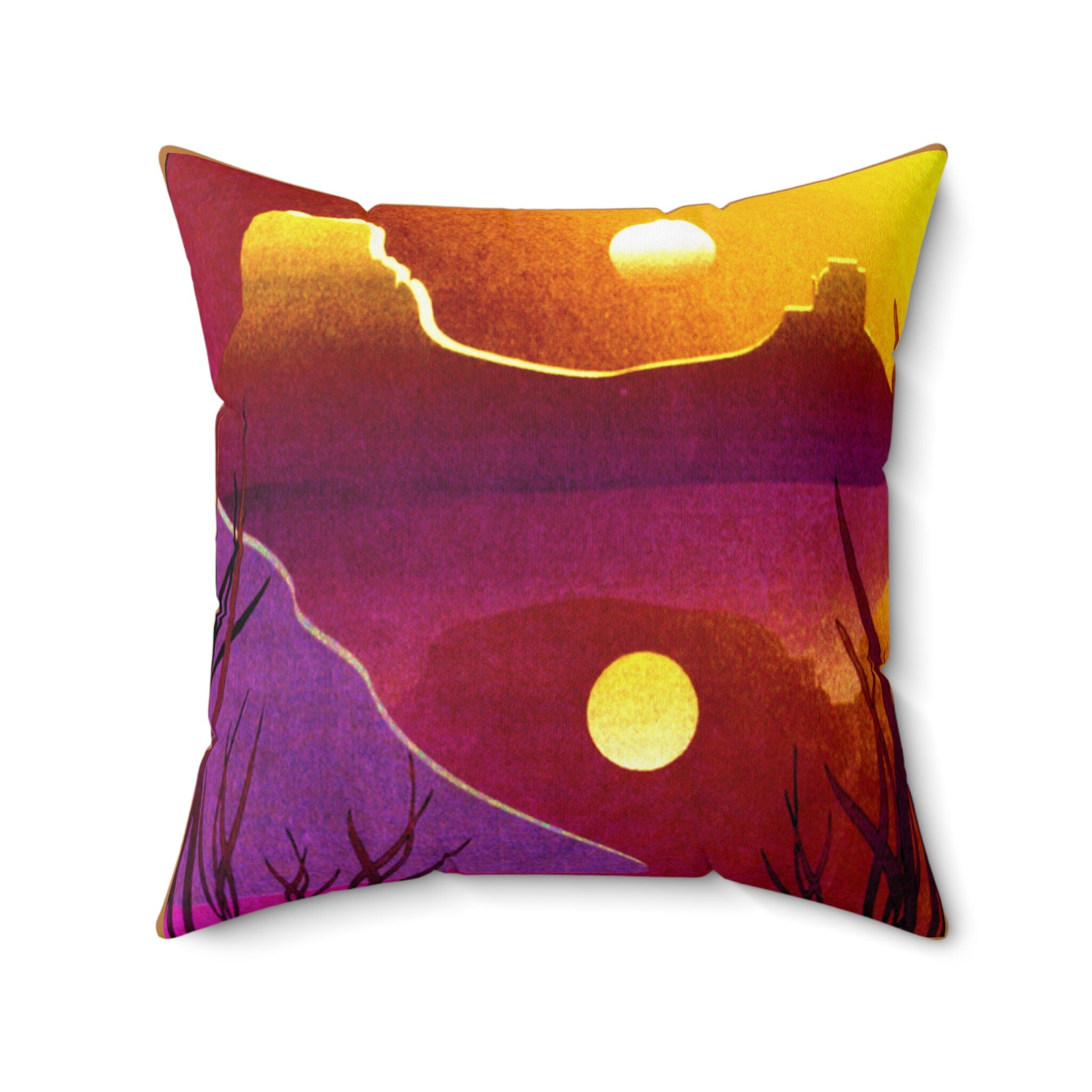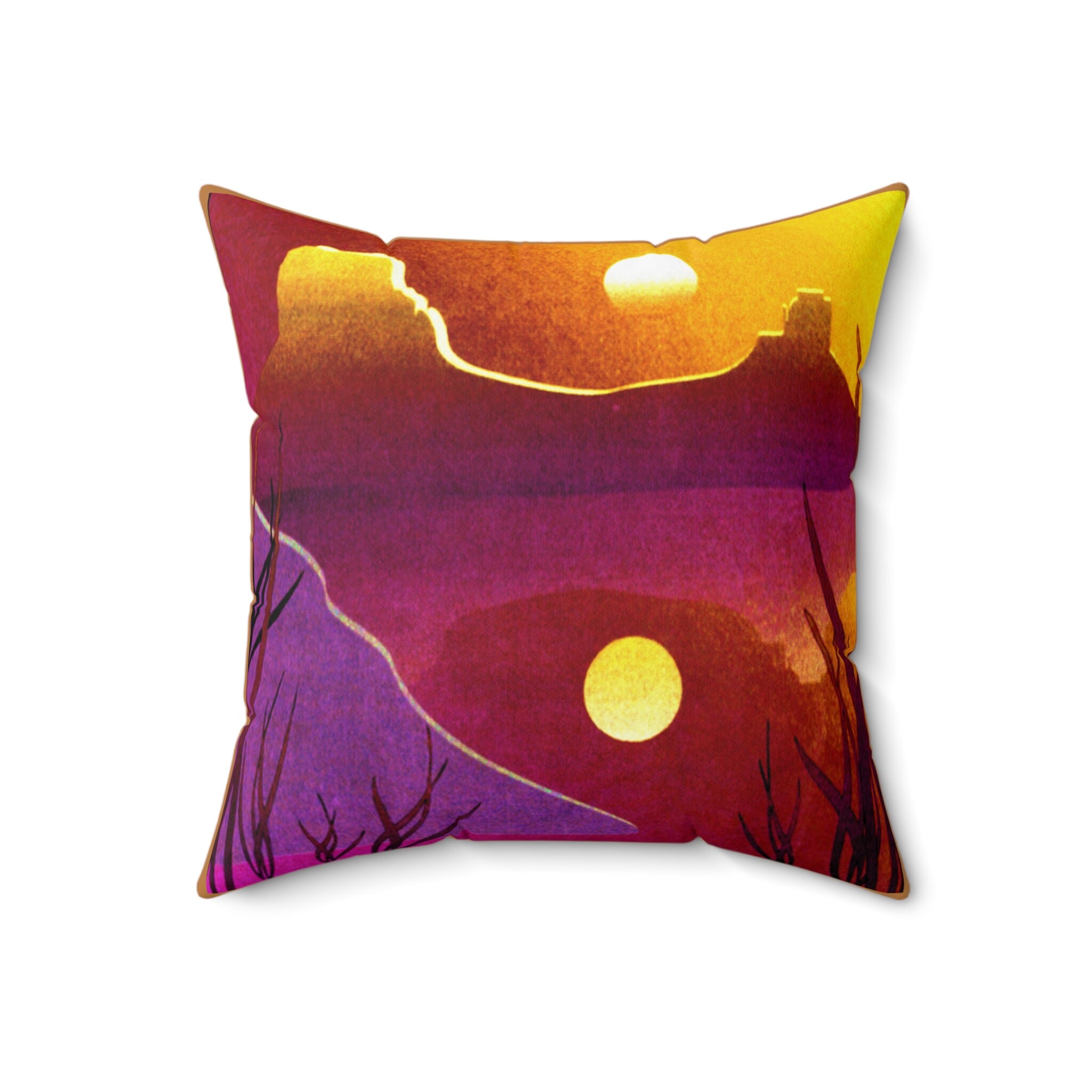 The right accent can bring a whole room to life, and the rich pattern of this desert sunset throw pillow is just what you need to do that.