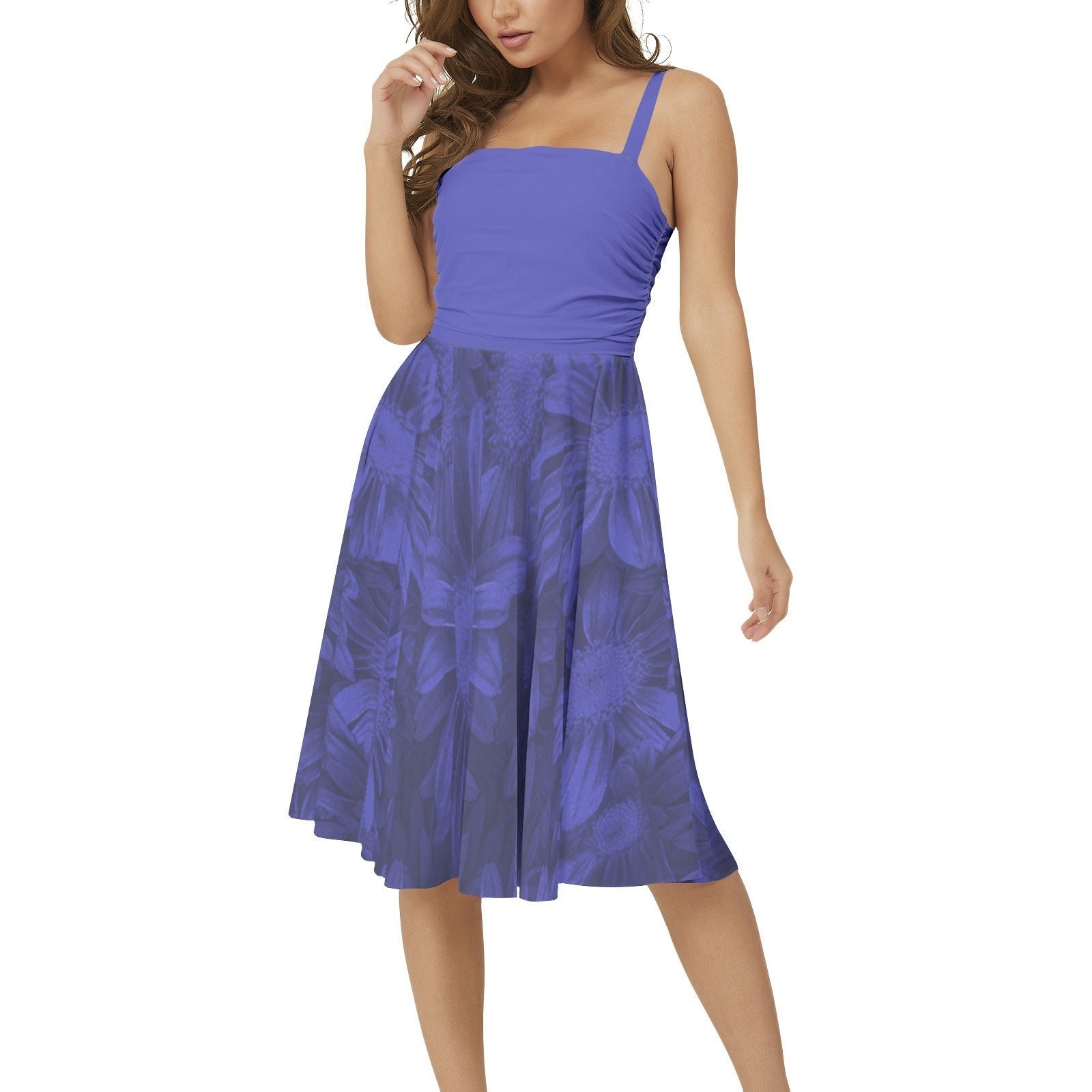 The elegant flared hem of the dress adds a whimsical and enchanting touch. As you move, the fabric gracefully sways and flutters,