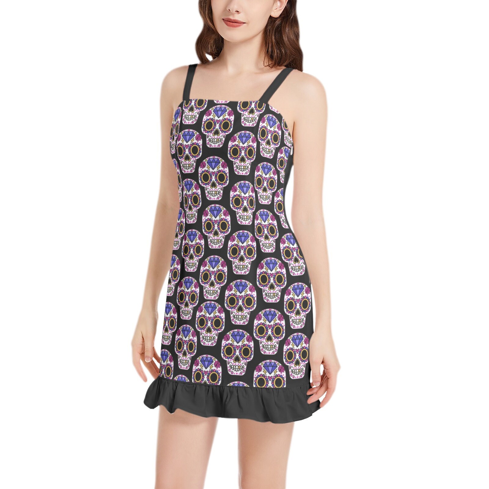 This sleeveless square neck ruffle hem mini dress is a must-have addition to every fashion-forward wardrobe.