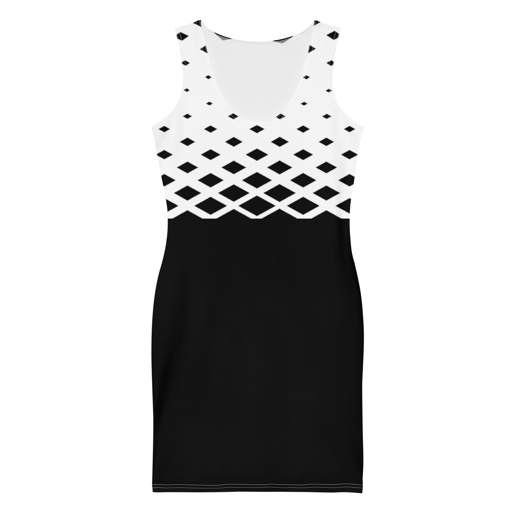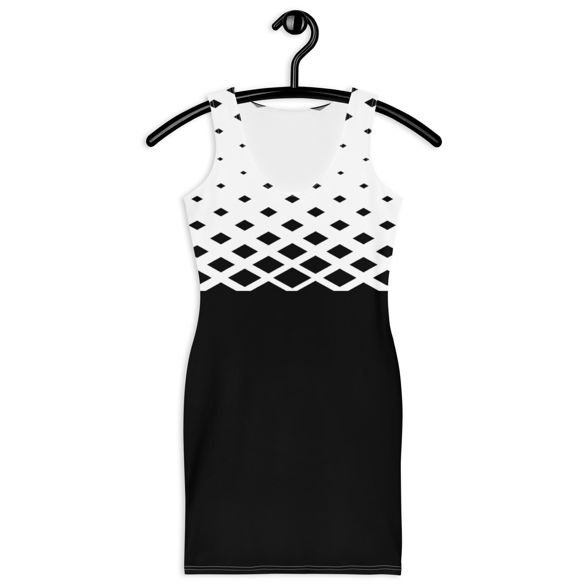 Make a statement and look fabulous in this black and white fitted mini dress.