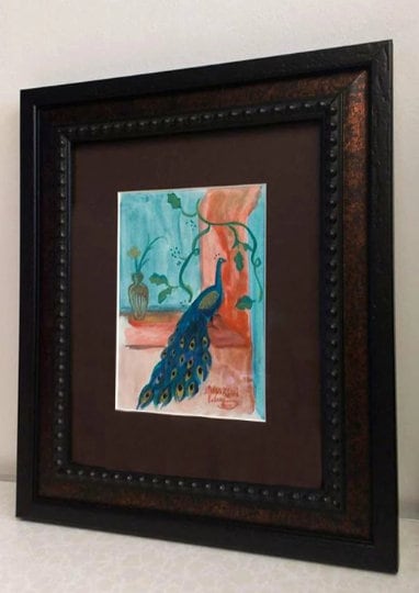 Metallic acrylic paint gives this bird wall art, peacock painting a shimmering effect.