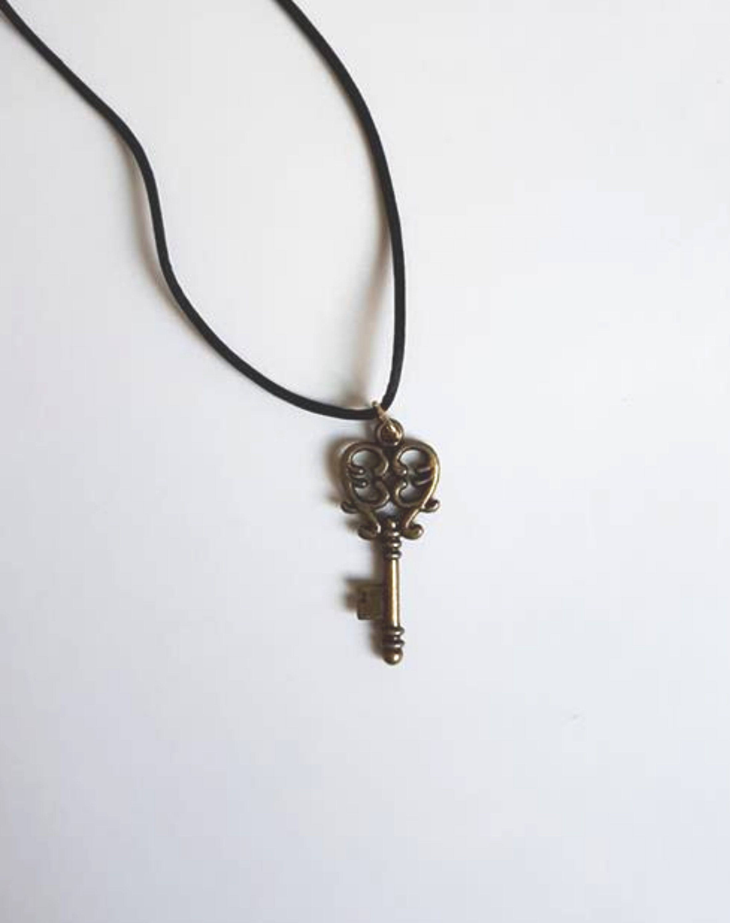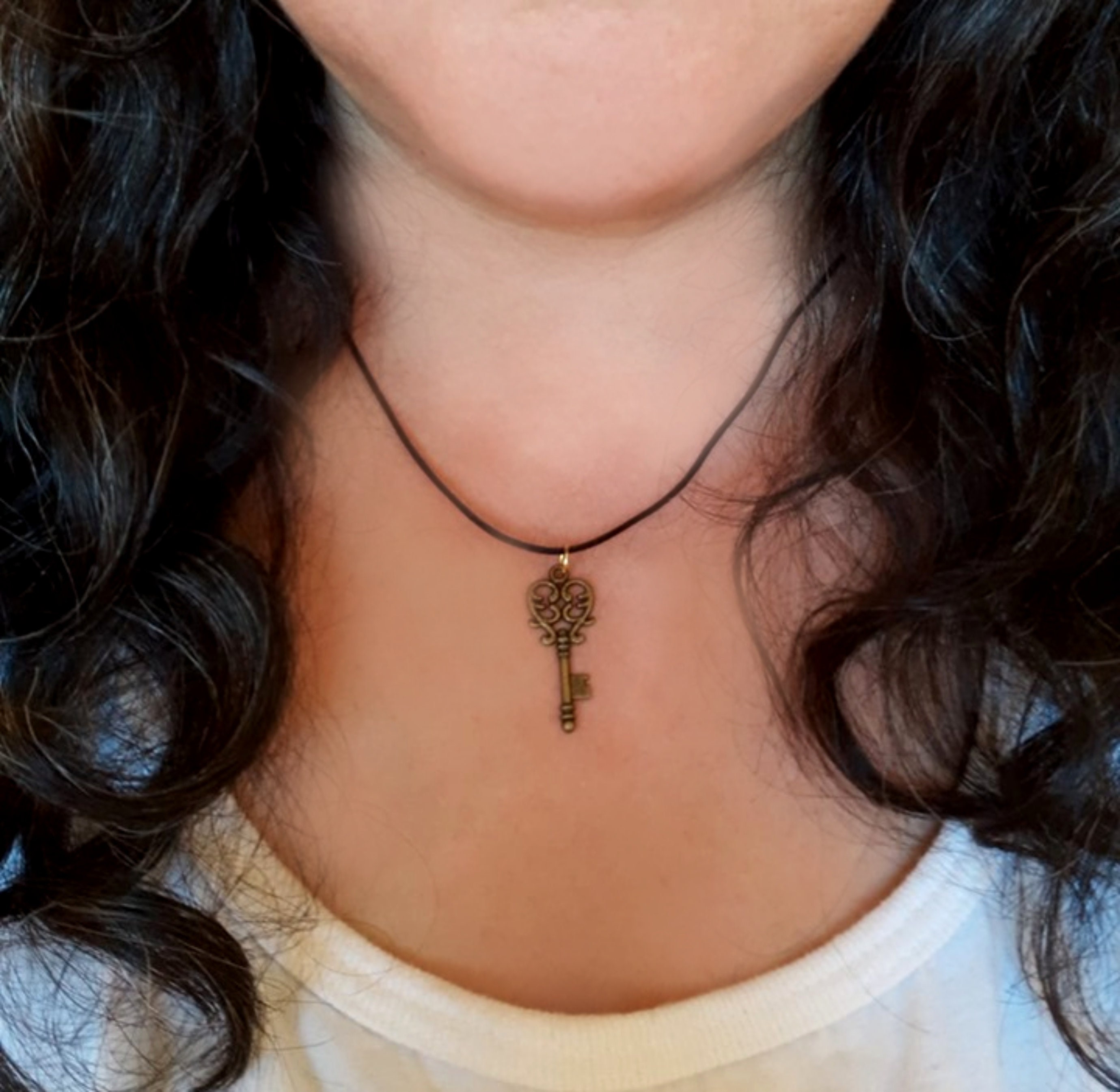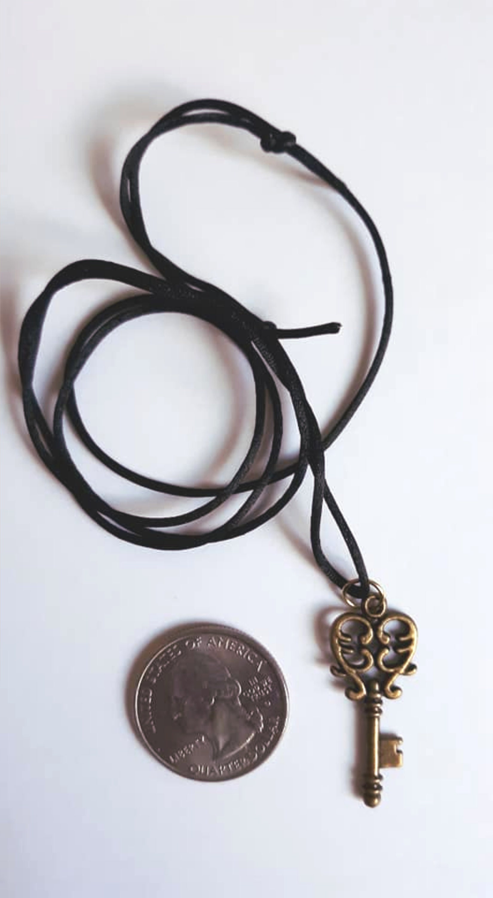 The charm and style of a Victorian Skeleton key in a simple adjustable length cord necklace.