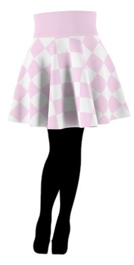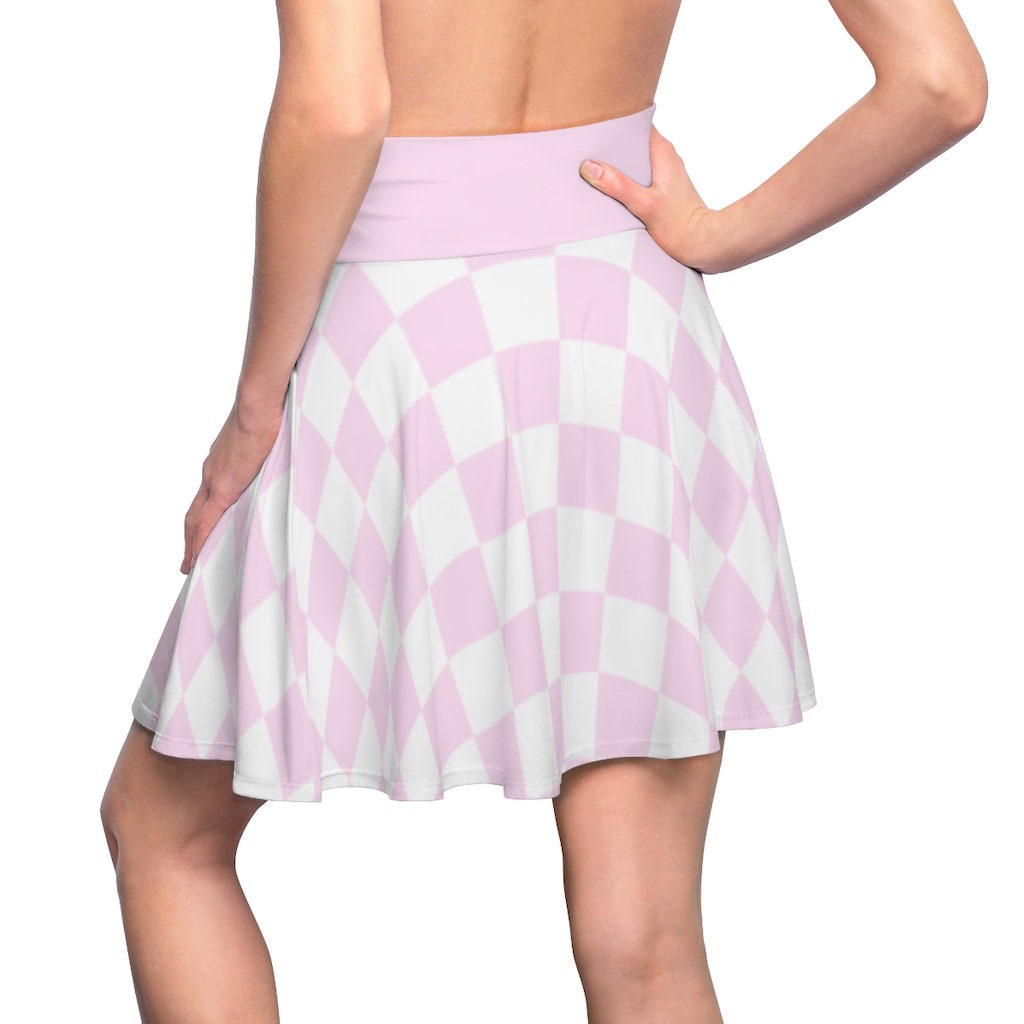 Skater Skirt- Plaid Skater Skirt - Skirt- Millennial Pink Skirt - High Waisted Light Pink Plaid Check